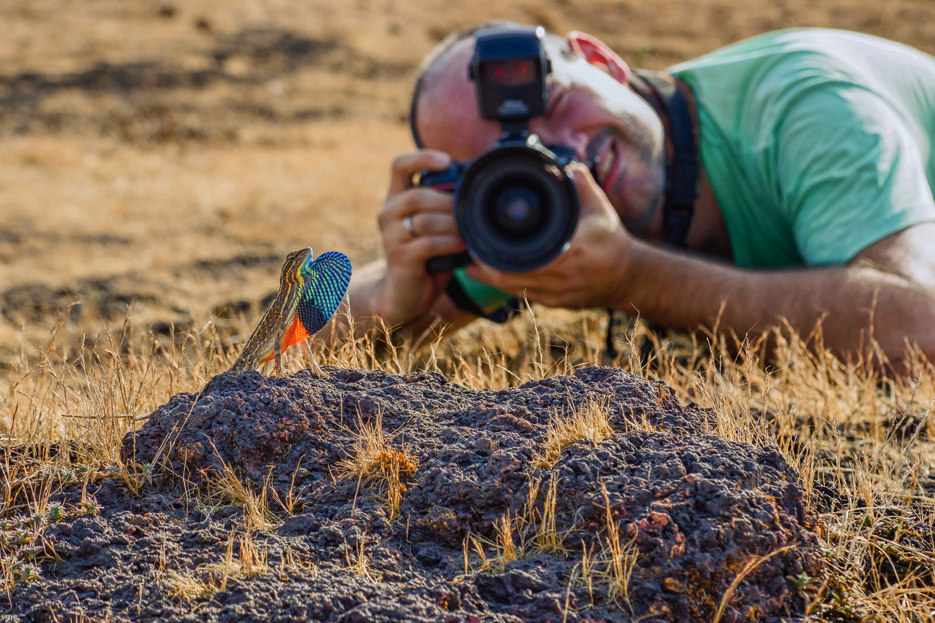 However, as you'll see in the photos below, we found the right spot and it only took 15 minutes of searching before we spotted out first lizards. These were not very colorful, but it was at least an indication we were in the right spot. After some more searching and when it started getting a bit warmer the first displays were seen. The lizards were generally quite approachable (as usual, it requires you to move slowly and remain very quiet) and we managed to get some great photographs of these beautiful animals.